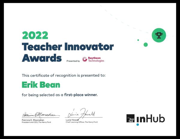 First Place Teacher for media literacy and information bias studies tied to Bias Is All Around You book as tested in classrooms.